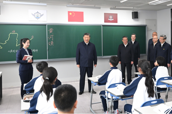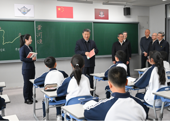 3月23日,中共中央总书记、国家主席、中央军委主席习近平在河北雄安新区考察,并主持召开深入推进雄安新区高质量建设和发展座谈会。这是23日上午,习近平在北京四中雄安校区考察时,同师生亲切交流。