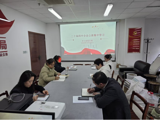 在全校深入学习党的二十届四中全会精神之际,10月28日下午,审计处党支部在719资料室组织全体员工集中学习《中国共产党第二十届中央委员会第四次全体会议公报》,会议由审计处党支部书记赵素琴主持。