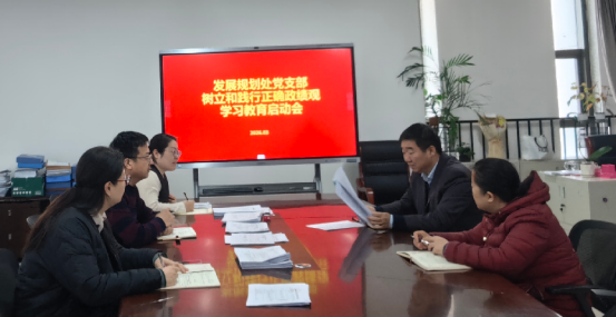 3月6日下午,发展规划处党支部在1028办公室召开树立和践行正确政绩观学习教育启动会。全体党员参加,支部书记李文星主持会议并作动员部署。