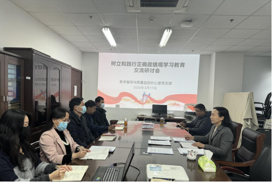 为深入开展树立和践行正确政绩观学习教育,切实把学习成果转化为推动教学督导与质量监控工作提质增效的实际行动,3月17日,教学督导与质量监控办公室党支部在图书馆南楼619召开树立和践行正确政绩观学习教育交流研讨会,部门全体人员参会,党支部书记赵荷花主持会议。
