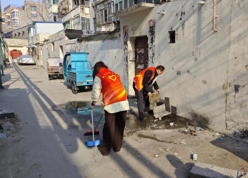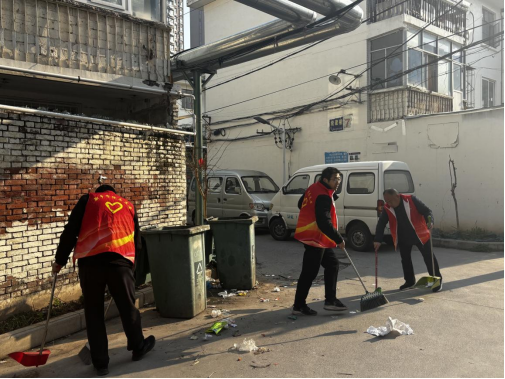 活动现场,志愿者们身穿红马甲,携带扫帚、簸箕等工具,分工协作、密切配合,重点对庭院路面、墙角、绿化带边缘等区域进行全面清扫。大家俯身清扫散落的烟头、纸屑、塑料袋等垃圾,细致清理长期积存的杂物,不放过任何一个卫生死角。经过一个多小时的集中清理,庭院环境焕然一新,路面干净整洁,整体面貌得到显著提升。